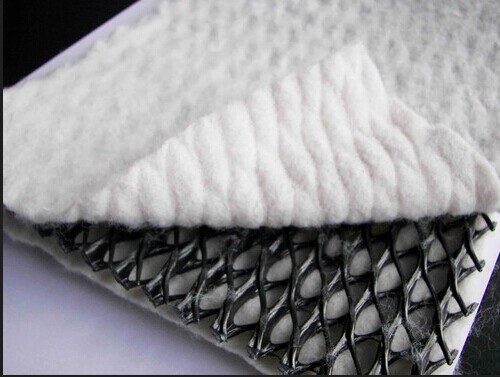 復(fù)合排水網(wǎng)是一種新型的排水土工材料。以高密度聚乙烯(HDPE)為原料,經(jīng)特殊的擠出成型工藝加工而成,具有三層結(jié)構(gòu)。中間筋條剛性大,縱向排列,形成排水通道,上下交叉排列的筋條形成支撐以防土工布嵌入排水通道,即使在很高的荷載下也能保持很高的排水性能。雙面粘接滲水土工布復(fù)合使用,具有“反濾--排水--透氣--保護”綜合性能,是目前理想的排水材料。